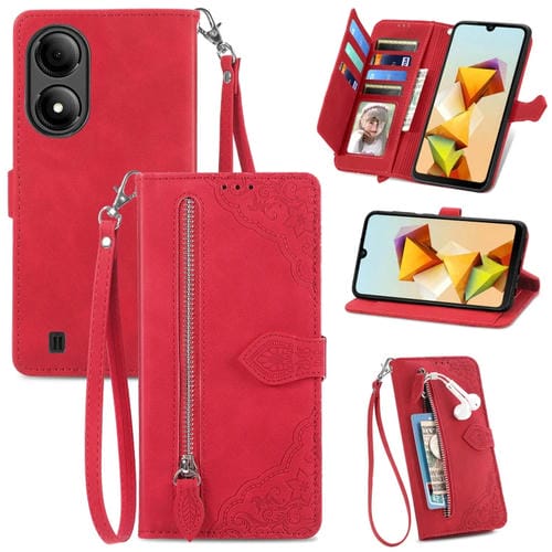 Funda de Cuero con Cremallera y Flor para ZTE Blade A33S (Rojo)