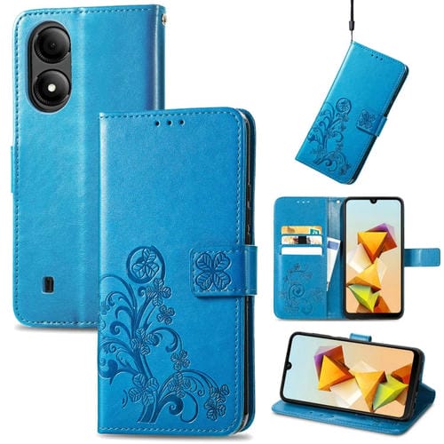 Funda para ZTE Blade A33S Cuero Repujado con Cierre de Cuatro Hojas (Azul)