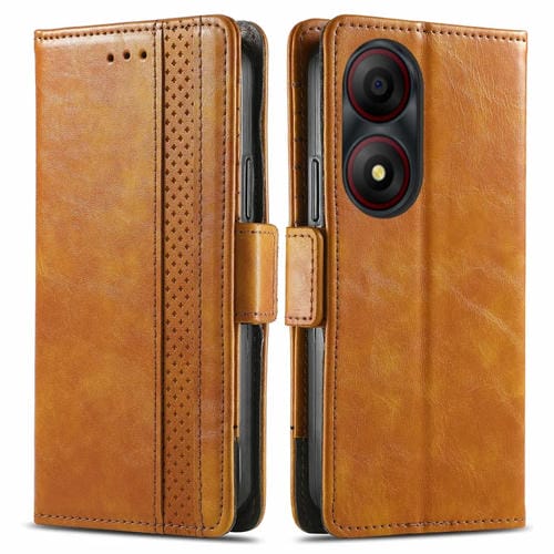 Funda de Cuero Caseneo Splicing para ZTE Blade A34 con Hebilla Magnética Dual (Caqui)