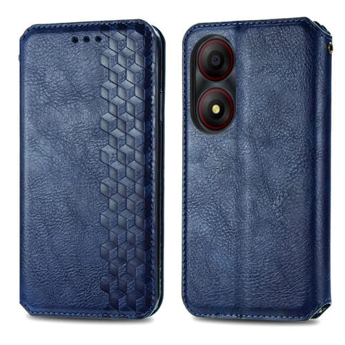 Funda para ZTE Blade A34 Cubic Grid de Cuero Magnético Prensado (Azul)