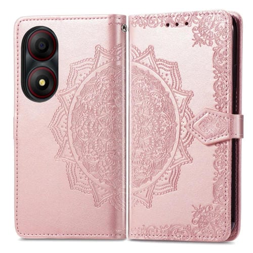 Funda para ZTE Blade A34 de Cuero con Estampado de Flores Mandala (Oro Rosa)