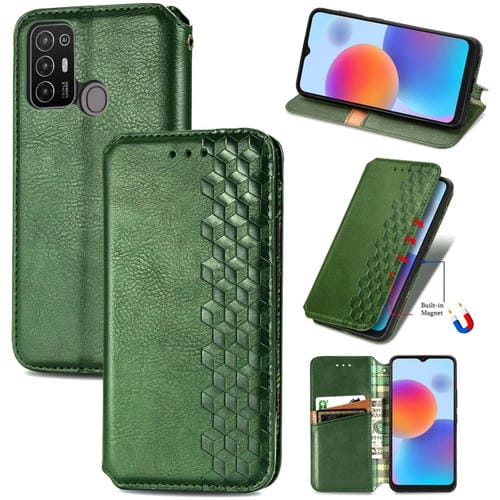 Caja de teléfono de cuero magnético prensado para ZTE Blade A52 con rejilla cúbica (Verde)