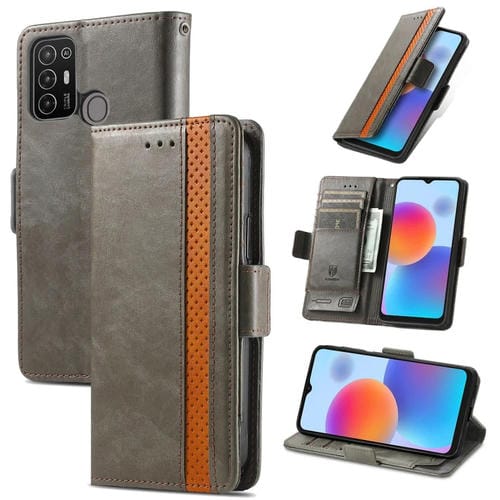 Funda de Cuero Caseneo para ZTE Blade A52 con Hebilla Magnética Dual (Gris)