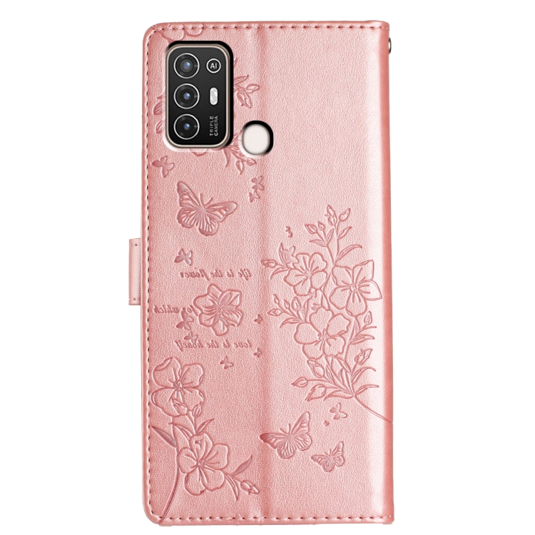 Funda para ZTE Blade A52 de Cuero con Relieve Flor Amor y Mariposa (Oro Rosa)