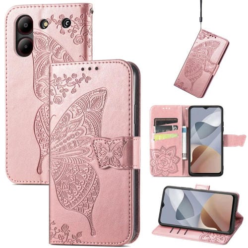 Funda para ZTE Blade A54 Cuero con Relieve Flor de Amor y Mariposa (Oro Rosa)