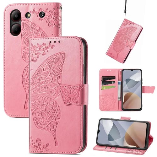 Funda para ZTE Blade A54 de Cuero con Relieve Flor de Amor y Mariposa (Rosa)