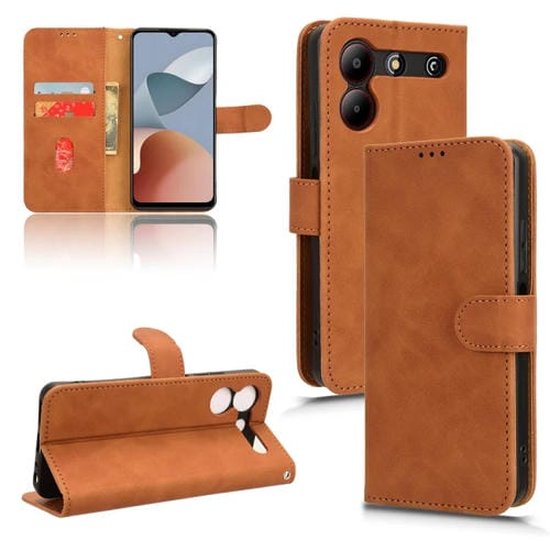Funda de Cuero para ZTE Blade A54 Skin Feel con Tapa Magnética (Marrón)