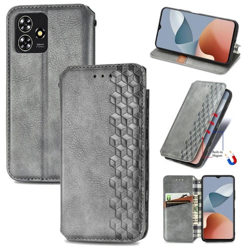 Funda de Cuero Magnética para ZTE Blade A73 4G Cubic Grid (Gris)