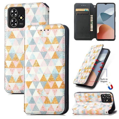 Funda de Cuero Magnética Caseneo para ZTE Blade A73 5G Colorida (Rombo)