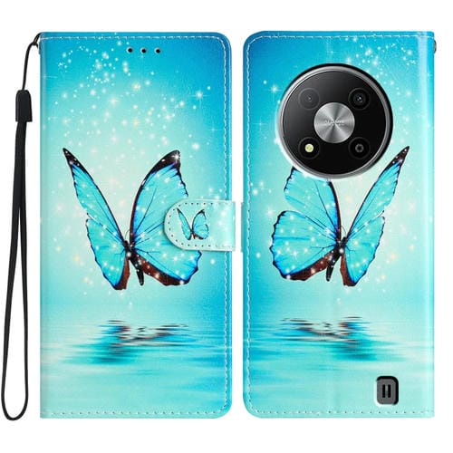 Funda de Cuero para ZTE Blade A73 5G con Dibujo Coloreado Mariposa Azul