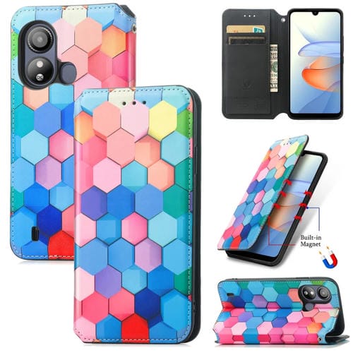 Funda de Cuero Magnética Caseneo para ZTE Blade L220 (Cubo Colorido)