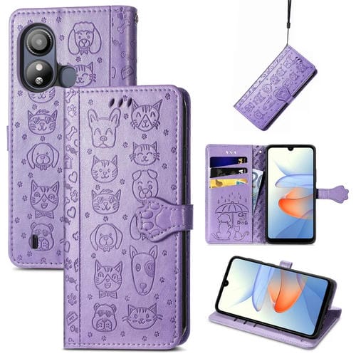Funda para Teléfono ZTE Blade L220 Cuero Relieve Perro y Gato (Púrpura)
