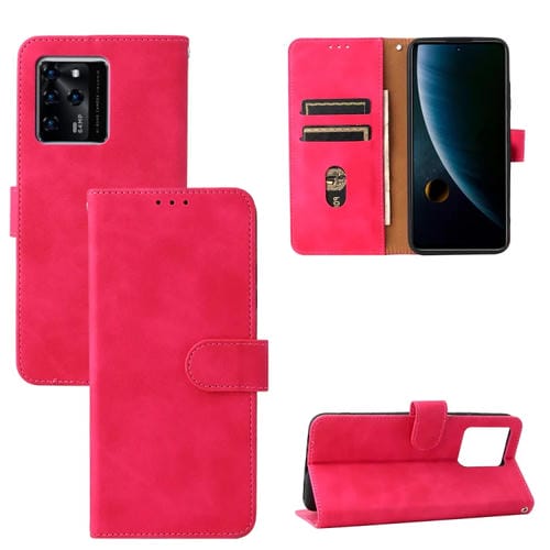 Funda para ZTE Blade V30 con Hebilla Magnética y Textura de Piel PU (Rose Rojo)