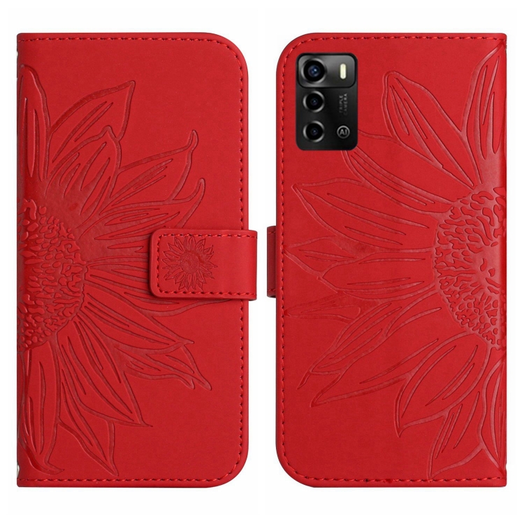 Funda Flip de Cuero para ZTE Blade V40 Vita / A72 Skin Feel con Cordón y Patrón Sun Flower (Rojo)