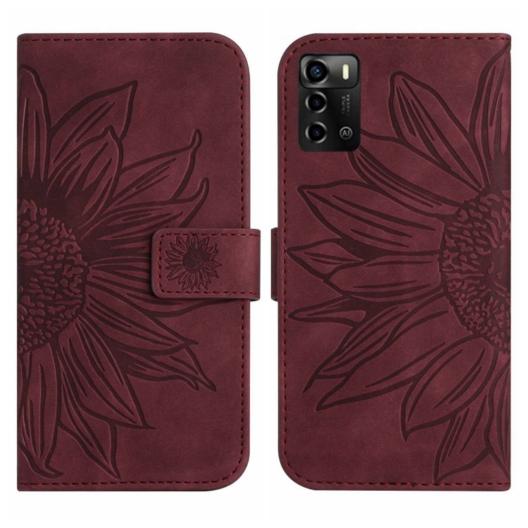 Funda Flip de Cuero ZTE Blade V40 Vita A72 Skin Feel Sun Flower con Cordón (Rojo Vino)