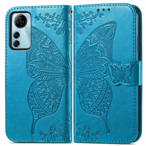 Funda de Cuero para ZTE Blade V41 Smart con Diseño Butterfly Love Flower en Relieve (Azul)