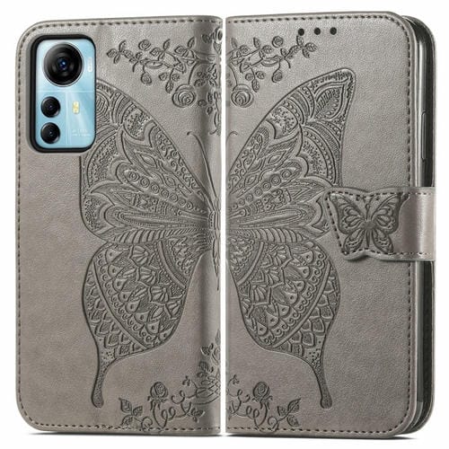 Funda de Cuero para ZTE Blade V41 Smart Butterfly Love Flower en Relieve (Gris)