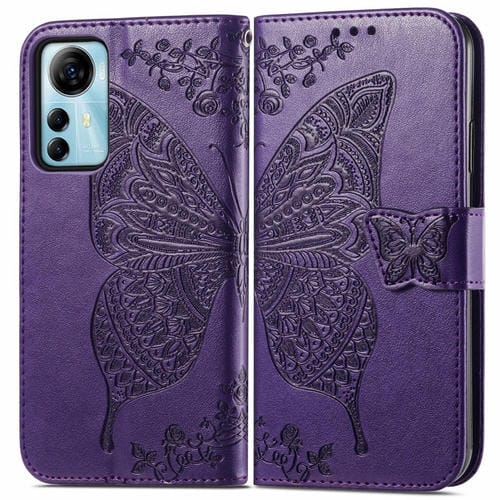 Funda de Cuero para ZTE Blade V41 Smart con Relieve Butterfly Love Flower (Púrpura Oscuro)