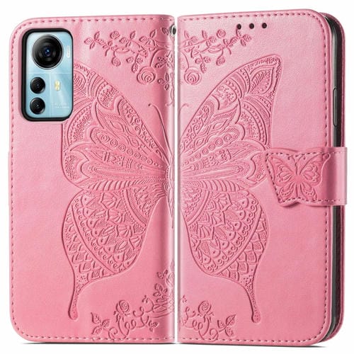 Funda de Cuero ZTE Blade V41 Smart Butterfly Love Flower en Relieve (Rosa)