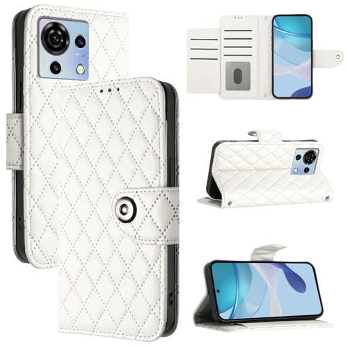 Funda para ZTE Blade V50 Vita con Tapa de Cuero Textura Rombal y Cordón (Blanco)