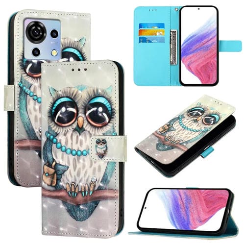 Funda para ZTE Blade V50 Vita de Cuero con Tapa Horizontal y Pintura 3D (Búho Gris)