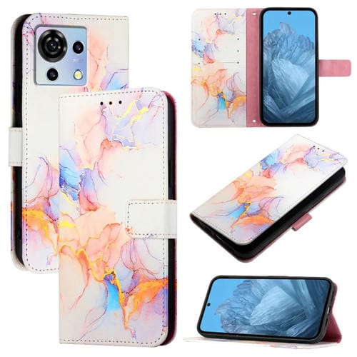 Funda de Cuero con Tapa para ZTE Blade V50 Vita Pt003 con Patrón Mármol (Galaxy Marble White)