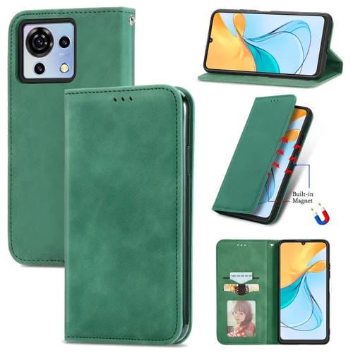 Funda de Cuero Magnético para ZTE Blade V50 Vita Retro Skin Feel (Verde)