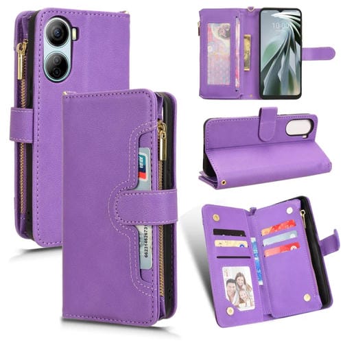 Funda de Cuero con Cremallera para ZTE Libero 5G Ⅳ Textura Litchi (Púrpura)