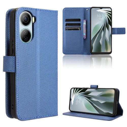 Funda de Cuero para ZTE Libero 5G Iv con Textura de Diamante (Azul)
