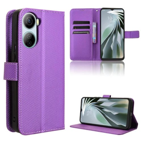 Funda de Cuero para ZTE Libero 5G Iv con Textura de Diamante (Púrpura)