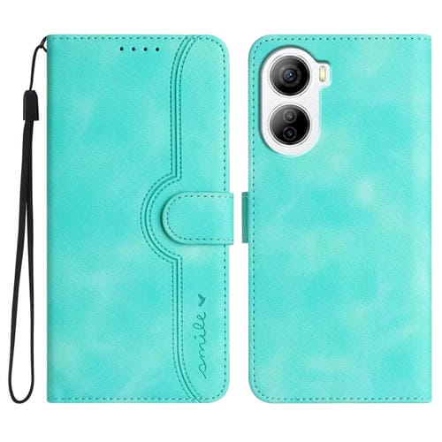 Funda de Cuero para ZTE Libero 5G Iv con Sensación de Piel y Patrón de Corazón (Azul Claro)