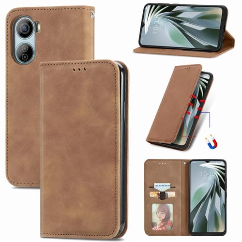 Funda de Cuero Magnética para ZTE Libero 5G Iv con Sensación de Piel Retro (Marrón)