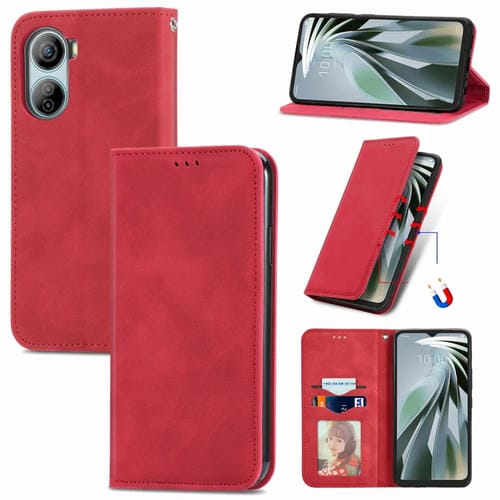 Funda de Cuero Magnética para ZTE Libero 5G Iv con Sensación de Piel Retro (Rojo)