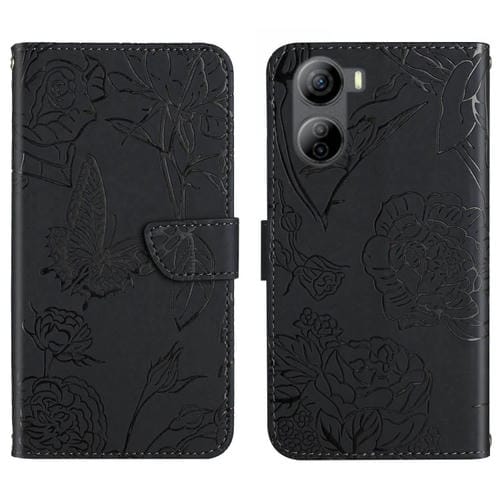 Funda de Cuero para ZTE Libero 5G Iv Skin Feel Butterfly Peony en Relieve (Negro)