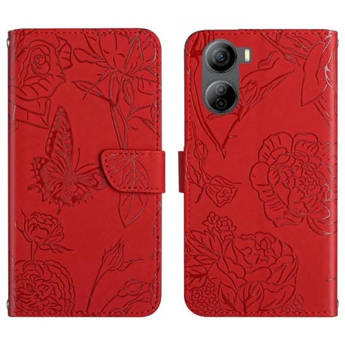 Funda de Cuero ZTE Libero 5G Iv Skin Feel Butterfly Peony En Relieve (Rojo)