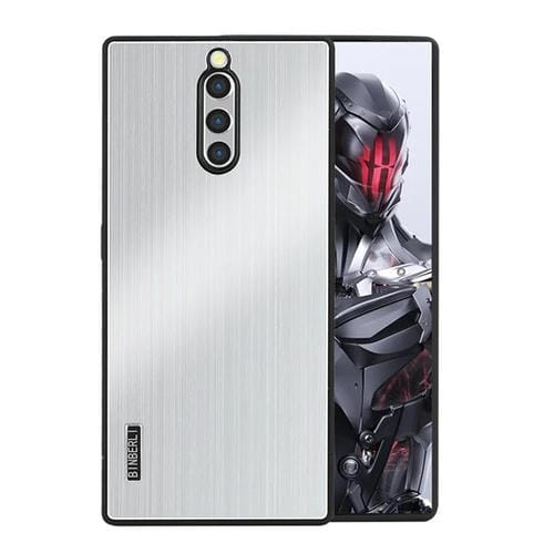 Estuche híbrido para ZTE Nubia Red Magic 8 Pro y 8 Pro+ de aleación de aluminio cepillado a prueba de golpes (Plateado)