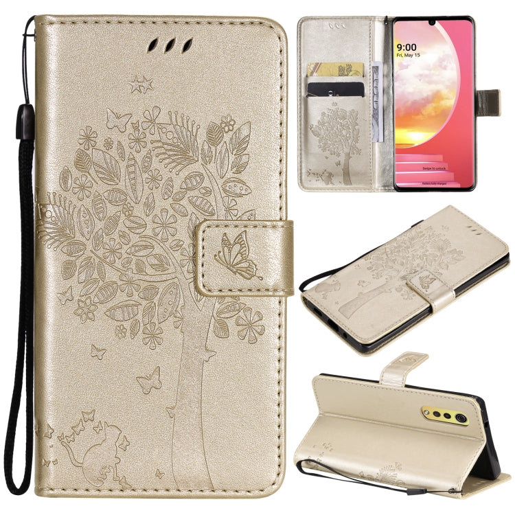 Funda Flip Horizontal LG Velvet 2 Pro con Soporte, Ranuras y Cordón (Oro) Patrón Árbol y Gato