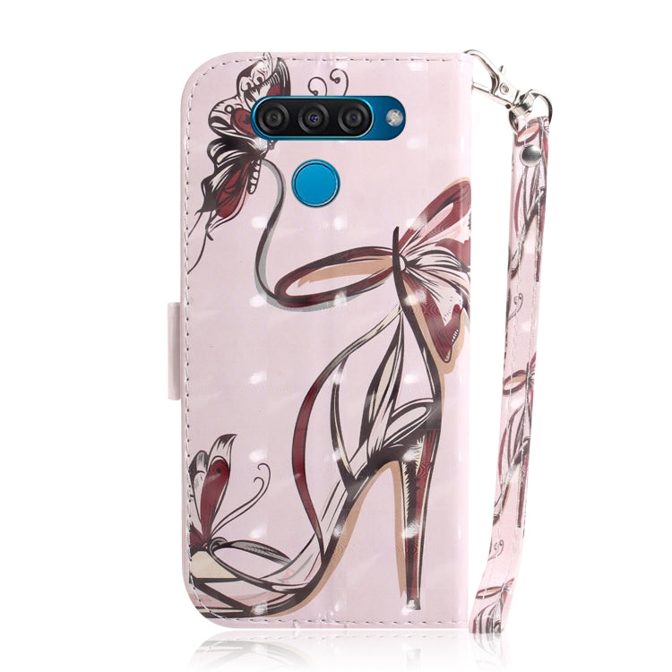 Funda de Cuero LG Q60 con Pintura 3D Mariposa y Tacones Altos, Tapa Horizontal, Soporte y Ranuras para Tarjetas