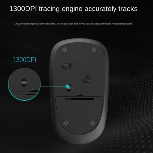 - Resolución fotoeléctrica de 1300 DPI, 3 teclas silenciosas, aceleración de 10g, distancia de funcionamiento Inalámbrica de 10 metros, tamaño de 113x64x30 mm, peso de 60 gramos, Alimentación mediante 1 Batería AA (no incluida)