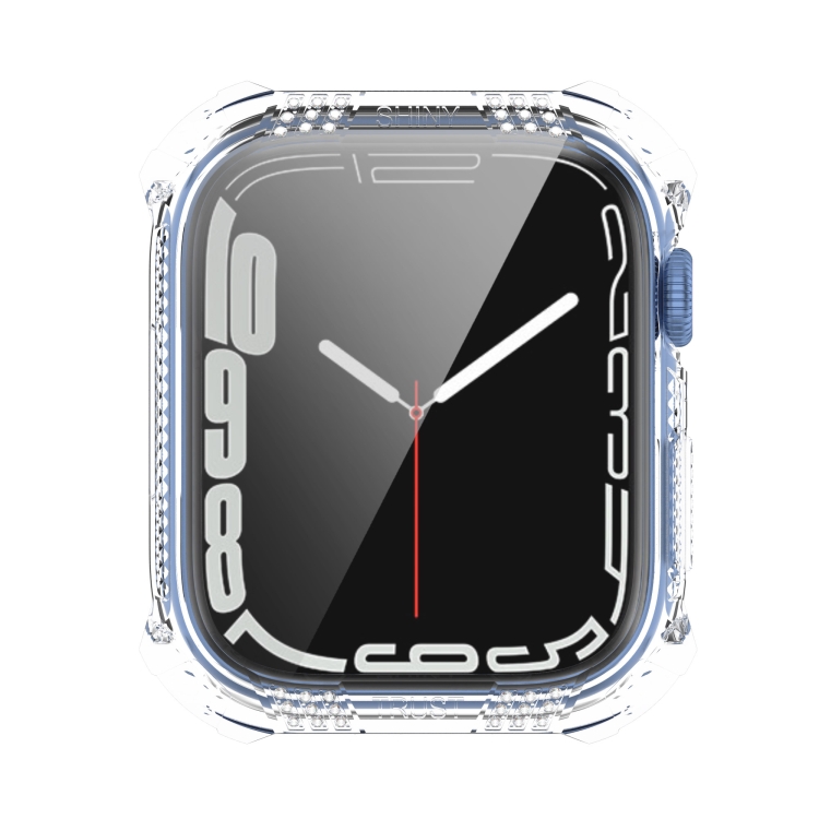 Rhombus Belt Drill + Estuche con Película Templada para Apple Watch Series 8/7 41mm (Blanco Transparente)