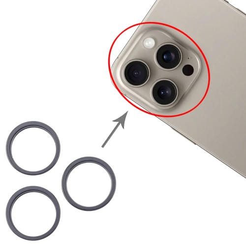 El Juego de 3 protectores de Metal para la Cámara Trasera del iPhone 16 Pro en color Negro está diseñado para reemplazar el anillo protector metálico Exterior de la Cámara Trasera de este modelo específico de Apple. Su función principal es proteger los Lentes de la Cámara de daños físicos y desgaste, manteniendo la integridad óptica del dispositivo. Este Conjunto es compatible exclusivamente con el iPhone 16 Pro y se recomienda para usuarios que requieran restaurar la protección externa de la Cámara Trasera, ya sea por daño o desgaste. Cada protector ha sido verificado para asegurar un ajuste preciso y funcionalidad óptima, garantizando la protección adecuada sin afectar el rendimiento de la Cámara.