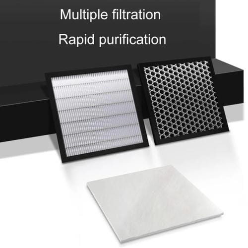 • Triple filtración con capas reemplazables; filtro primario (PM50), filtro HEPA (PM0.5) y filtro de carbón activado; recomendaciones de sustitución: filtro primario cada 1 mes, filtros HEPA y carbón activado cada 6 meses
