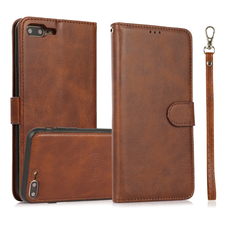 Funda de Cuero 2 en 1 para iPhone 8 Plus 7 Plus con Soporte y Tarjetero (Brown)