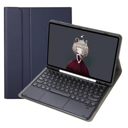 Funda de cuero con teclado Bluetooth Ya098B-A para iPad Air 4 10.9 / Pro 11 (2020) y (2018) con control táctil y soporte (Azul Oscuro)