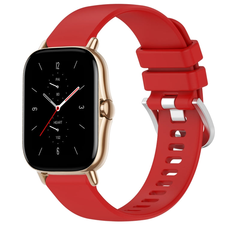 Correa de Silicona para Amazfit GTS 2E GTS 2 Mini GTS 2 con Hebilla Plateada 20mm (Rojo)
