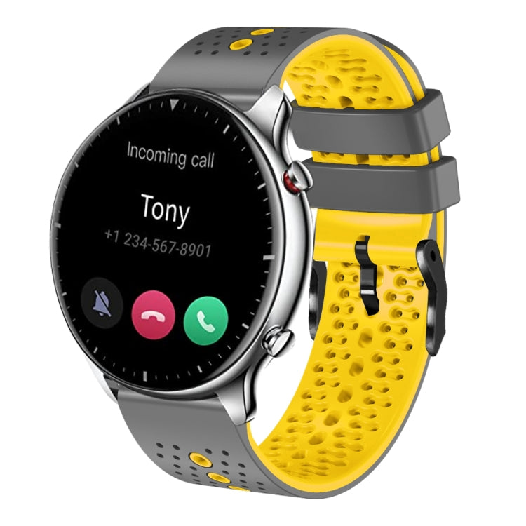 Correa de Silicona Bicolor Perforada para Amazfit GTR 2 22mm (Gris + Amarillo)