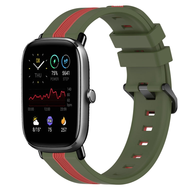 Correa de Reloj para Amazfit GTS 2 Mini 20mm Silicona Dos Colores Vertical (Verde Militar + Rojo)