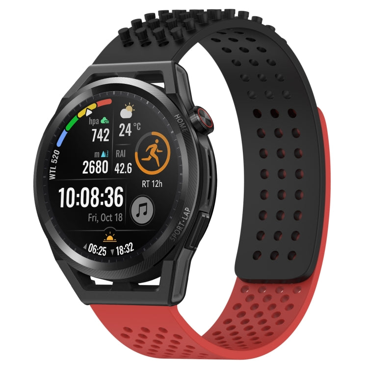 Correa de Silicona para Huawei Watch GT Runner 22mm con Puntos 3D y Orificios (Negro + Rojo)