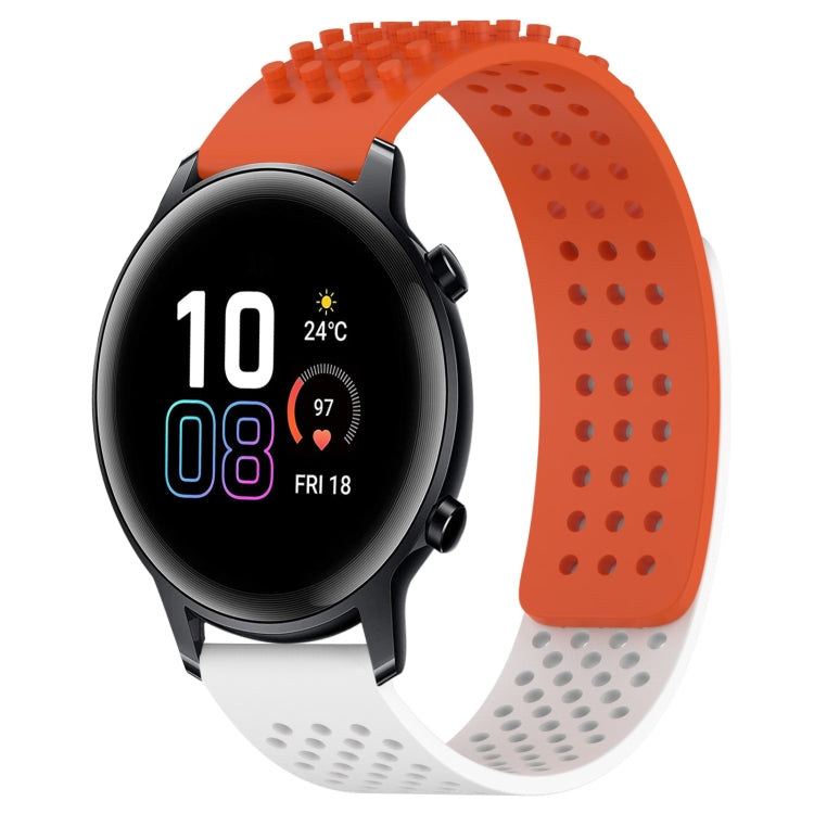 Correa de Silicona para Huawei Watch 3 con Puntos 3D Transpirables y Orificios 22mm (Naranja + Blanco)