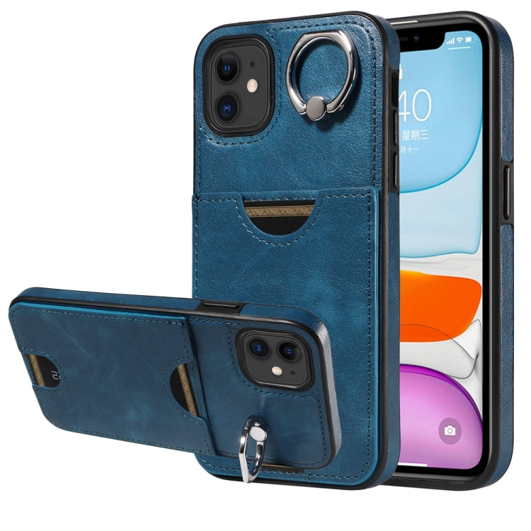Funda para Teléfono iPhone 11 con Soporte para Anillo y Ranura para Tarjeta (Azul)